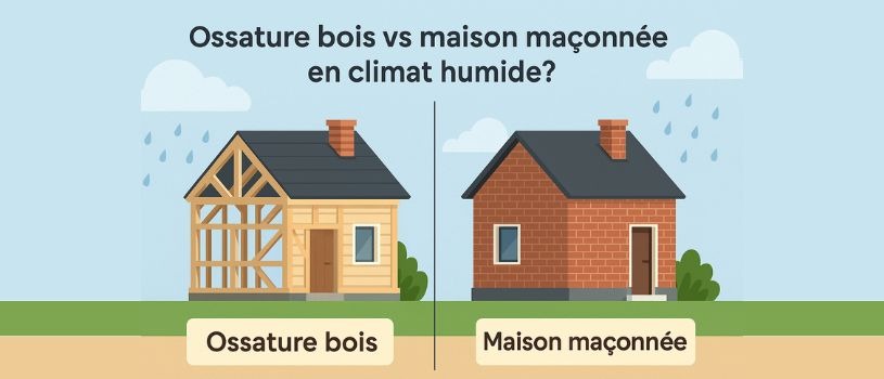 Ossature bois vs maison maçonnée : quel choix en climat humide ?